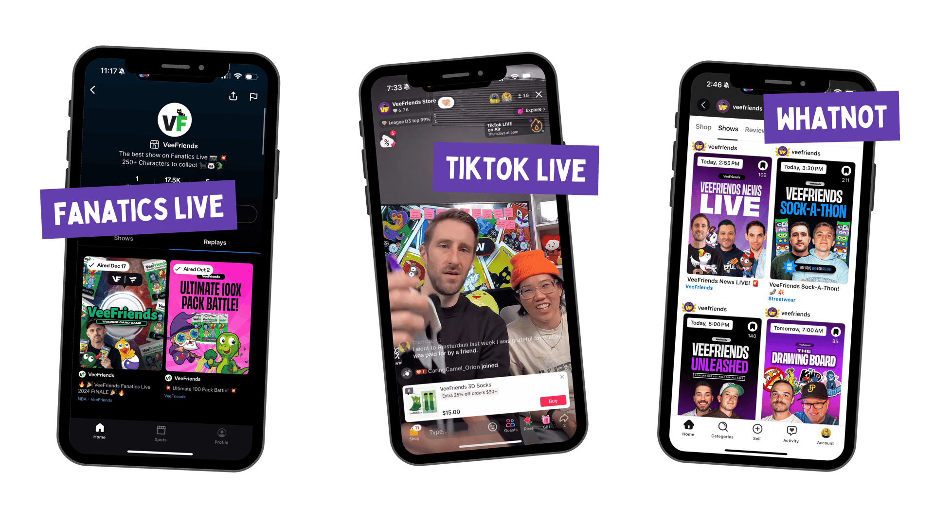 Go to Whatnot and find the VeeFriends category, you will find a lot of collectors in the streams.